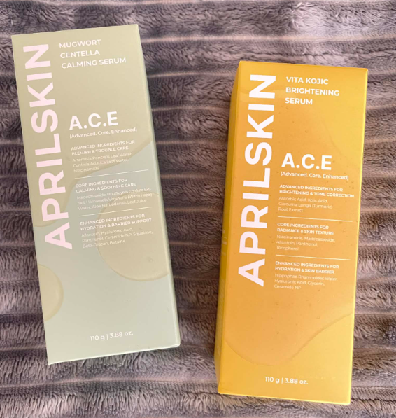 The APRILSKIN A.C.E Serum is a lightweight, watery brightening serum made with Kojic Acid and Vitamin C to help improve the look of dull, uneven skin. It absorbs fast, feels fresh on the skin, and works to support a more even, radiant glow on both the face and body!